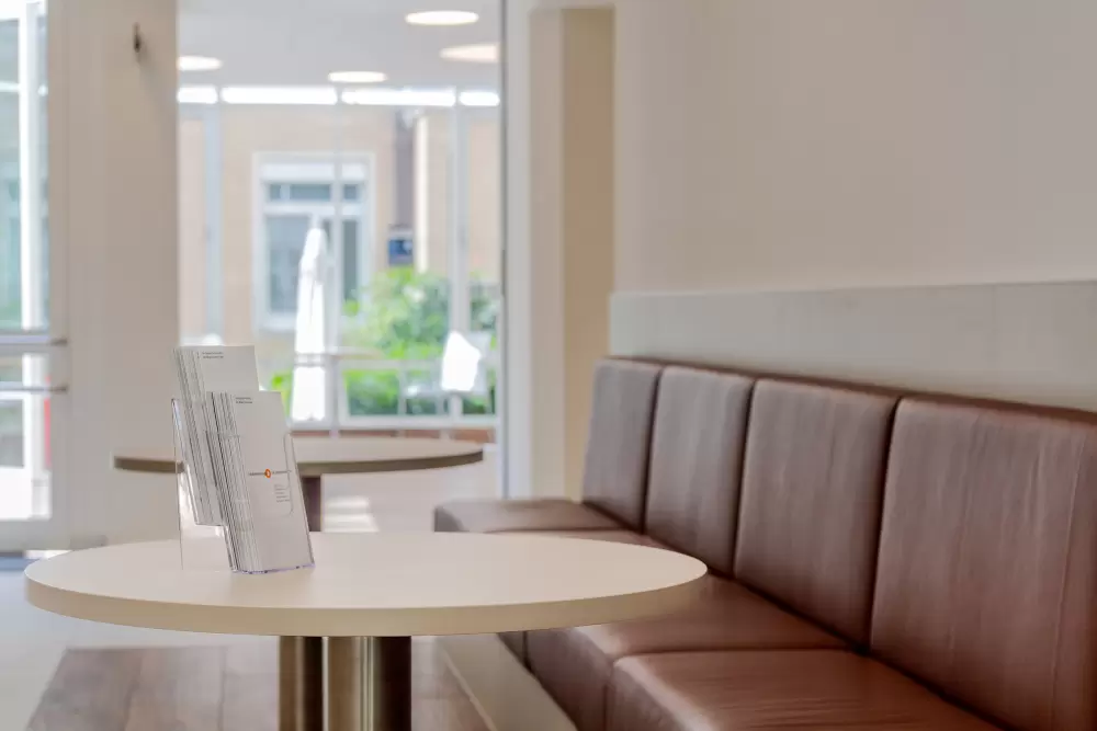 Der Wartebereich für unsere Praxis in der Klinik Josephinum, den wir uns mit der Praxis für Radiologie, Dr. W. Kellner und Prof. Dr. C. Rist, teilen, wurde modernisiert und bietet neben einer gemütlichen und ruhigen Lounge-Atmosphäre interessanten Lesestoff, kostenfreies W-LAN, Getränke sowie Wartezimmer-TV.